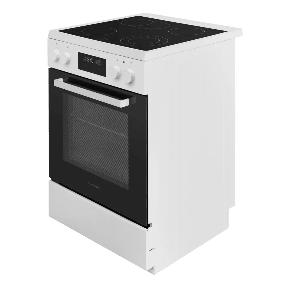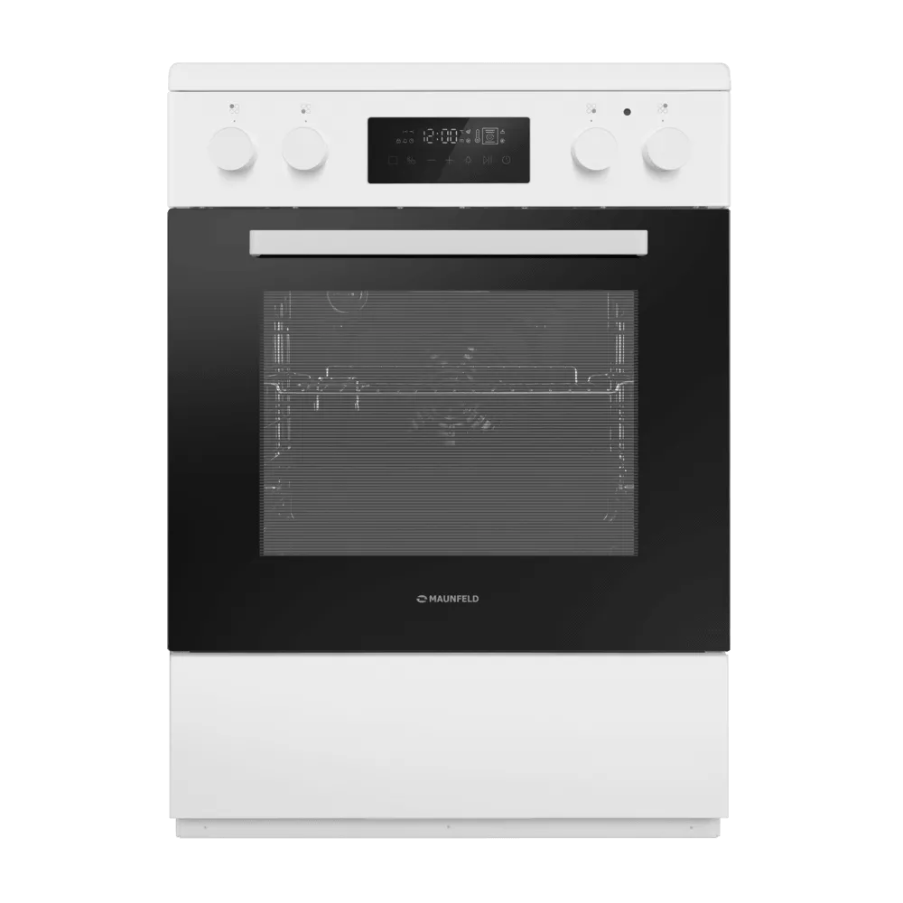 Электрическая стеклокерамическая плита MAUNFELD MEC611CW09TD — практичное решение для тех, кто хочет получить полноценную духовку и удобную стеклокерамическую поверхность в едином корпусе. Модель сочетает лаконичный белый дизайн и продуманную эргономику: понятные переключатели, дисплей и электронный таймер помогают легко контролировать процесс готовки.
