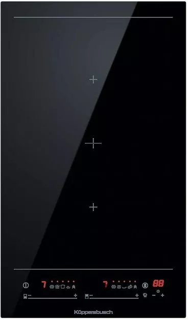 Индукционная варочная панель Kuppersbusch VKI 3850.0 SR — это компактное и технологичное решение для современной кухни, сочетающее премиальный дизайн и передовые индукционные технологии. Модель выполнена в элегантном черном стекле с безрамочной обработкой края и возможностью установки заподлицо с поверхностью столешницы, что создает безупречно гладкую рабочую поверхность. Панель оснащена двумя индукционными конфорками общей мощностью 3.6 кВт с функцией объединения Bridge, позволяющей использовать их как одну большую зону для посуды овальной или прямоугольной формы. Электронное управление с сенсорными переключателями TouchControl, цифровым дисплеем и функцией паузы Stop&Go обеспечивает максимальный комфорт. Широкий набор функций включает автоматическое распознавание посуды, определение диаметра, поддержание тепла, режимы Booster и PowerManagement, а также специальные ступени мощности для различных видов приготовления. Безопасность гарантируют блокировка управления, защита от детей, индикатор остаточного тепла и централизованное отключение.