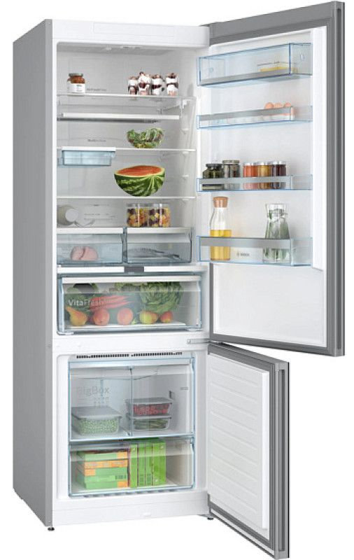Холодильник BOSCH KGN56LB31U Serie 6 рассчитан на хранение большого запаса продуктов для семьи: общий объем 559 л (417 л в холодильной камере и 142 л в морозильной). Чёрный цвет и стеклянное покрытие дверцы подчёркивают современный дизайн, а продуманная организация пространства с полками, балконами на дверце и зоной свежести помогает поддерживать порядок.