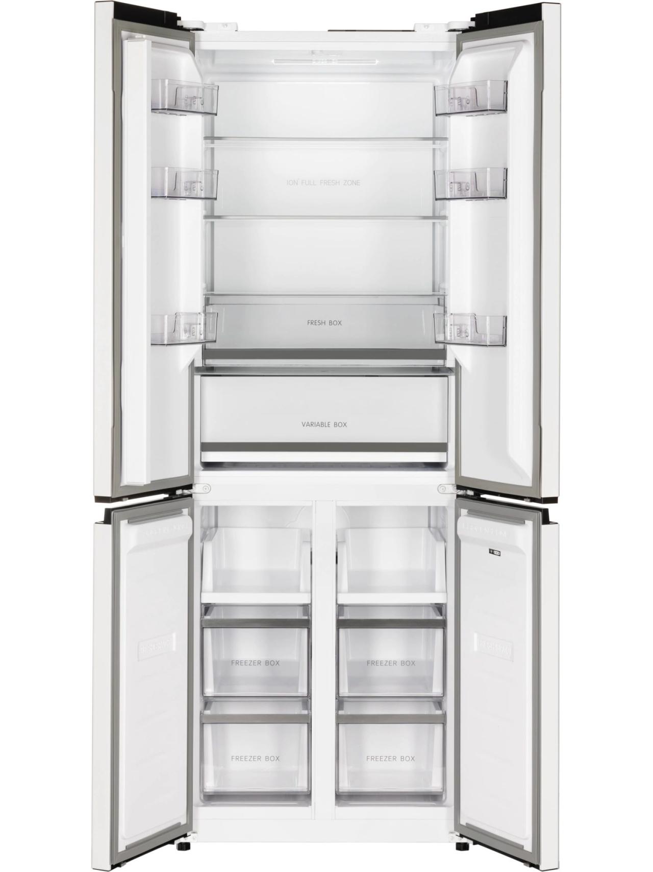 Четырехдверный холодильник NORDFROST RFQ 440 NFGW с инверторным компрессором, автоматической системой охлаждения No Frost и электронным управлением — отличное решение для большой семьи. Модель сочетает в себе утонченный дизайн и функциональность. Прибор, выполненный в стильном белом цвете, имеет высоту 192 см и ширину 703 мм. Общий объем 417 литров дает возможность хранить большое количество продуктов.