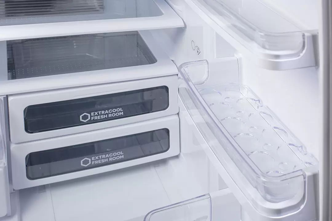 За эффективную и тихую работу отвечает инверторный компрессор J-Tech Invert, а гибридная система охлаждения поддерживает стабильную температуру и свежесть продуктов по всему объёму. Режимы Extra Cool и экспресс-заморозки помогут быстро охладить напитки или за считанные минуты получить лёд.