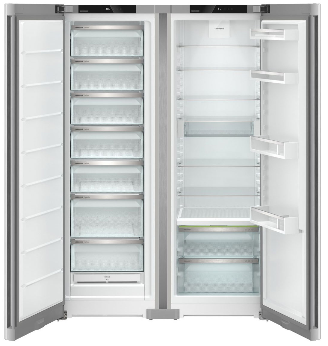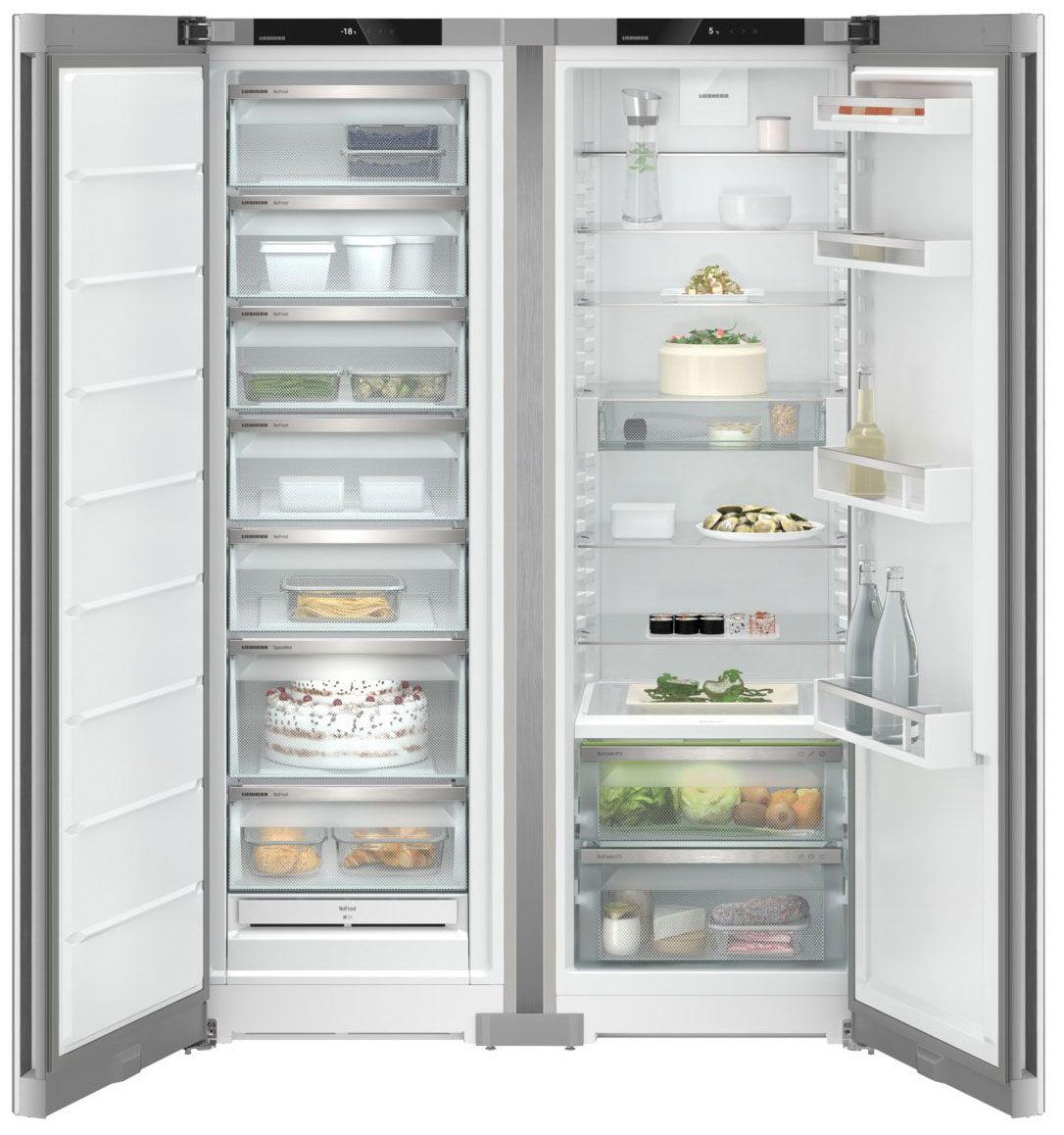 Холодильник Liebherr XRFsf 5225-22 001 формата Side-by-Side — это решение для просторной кухни. Его габариты (185,5 см в высоту и 122,6 см в ширину) скрывают огромный полезный объем в 648 литров. Элегантный серебристый цвет и стальная отделка дверей SteelFinish делают его стильным акцентом.