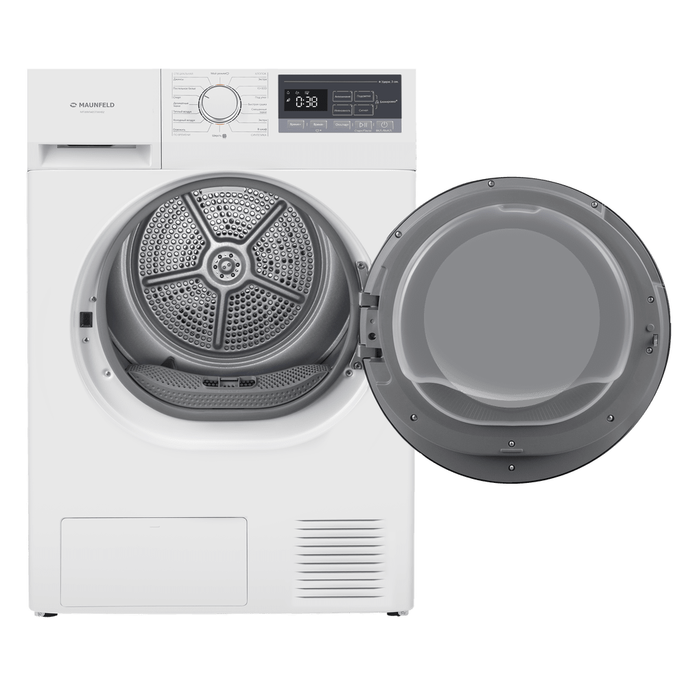 Комплект Maunfeld включает стиральную машину MFWM148STWH02, сушильную машину MFDM168WH02 и соединительный элемент WM-SK03. Это современное решение, которое экономит пространство и обеспечивает полный цикл ухода за бельём — от стирки до сушки.
