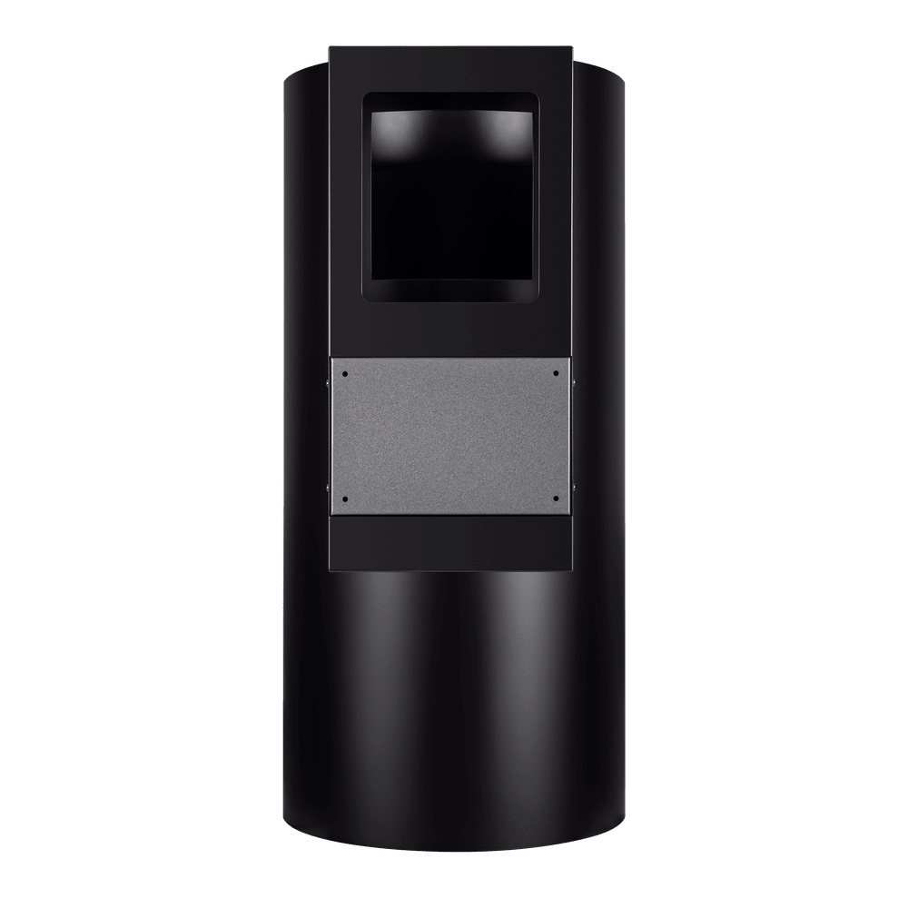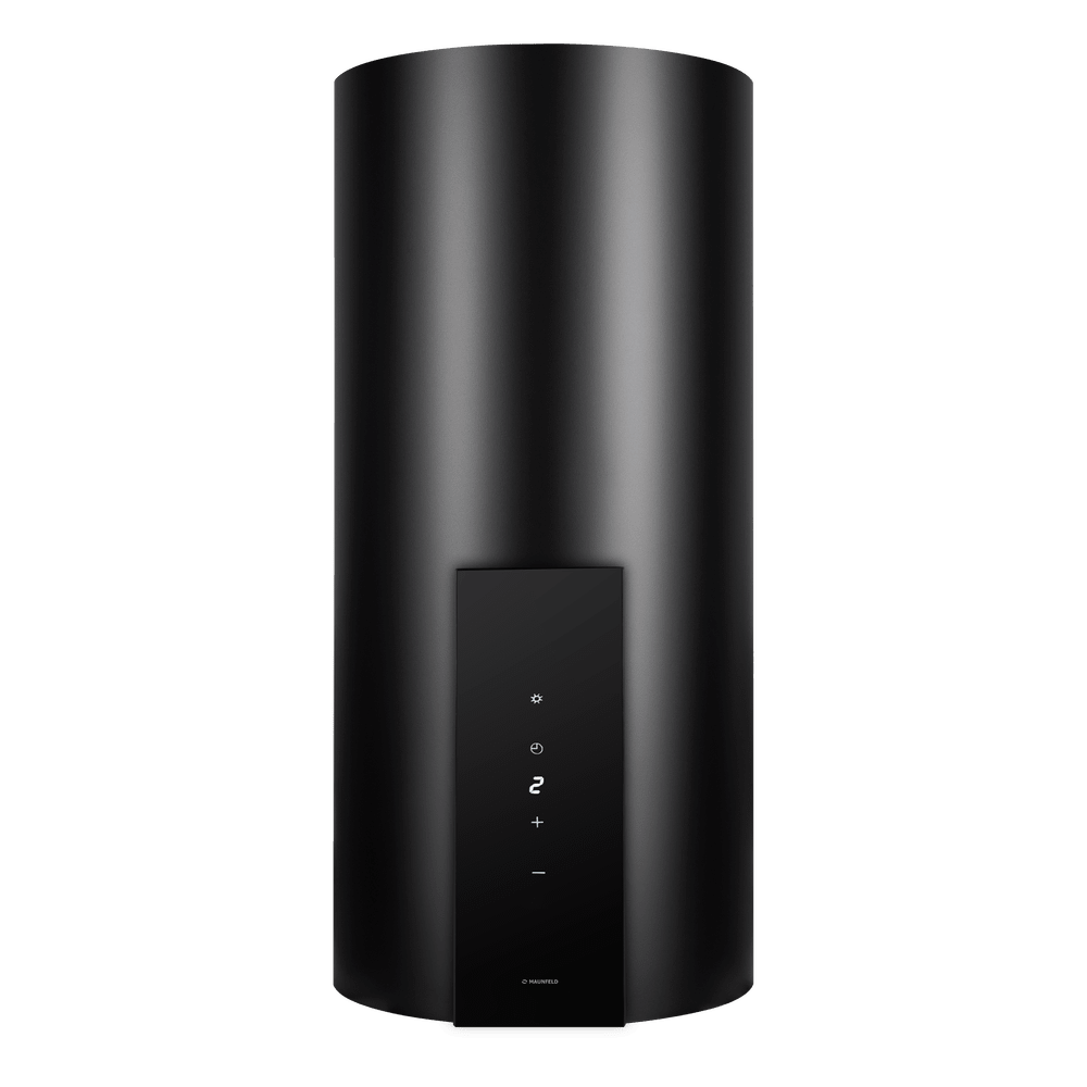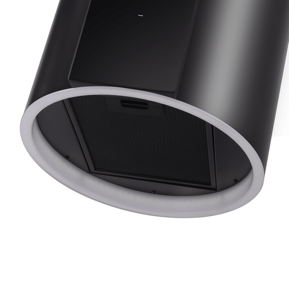 Корпус цилиндрической формы, выполненный из нержавеющей стали с термостойким покрытием, устанавливается на стену над поверхностью плиты. Алюминиевый многослойный жироулавливающий фильтр находится в нижнем торце вытяжки.