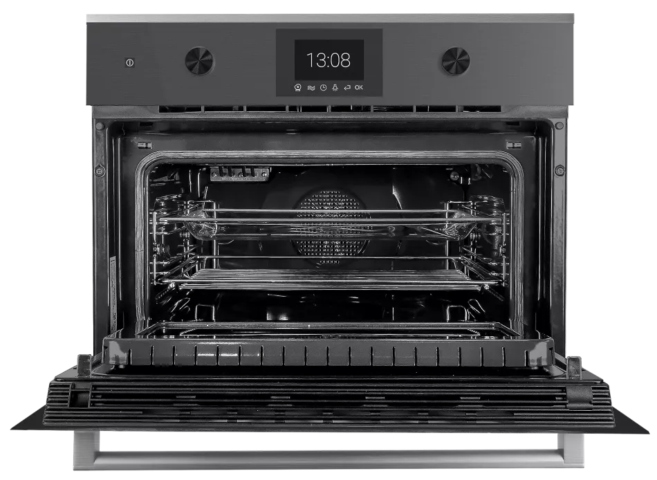 • Режимы работы. 10 режимов духовки (гриль, конвекция, нижний нагрев, верхний нагрев, пицца, традиционный, режим «ECO», интенсивный обдув горячим воздухом, большой гриль, гриль + конвекция) и 10 автоматических программ.
