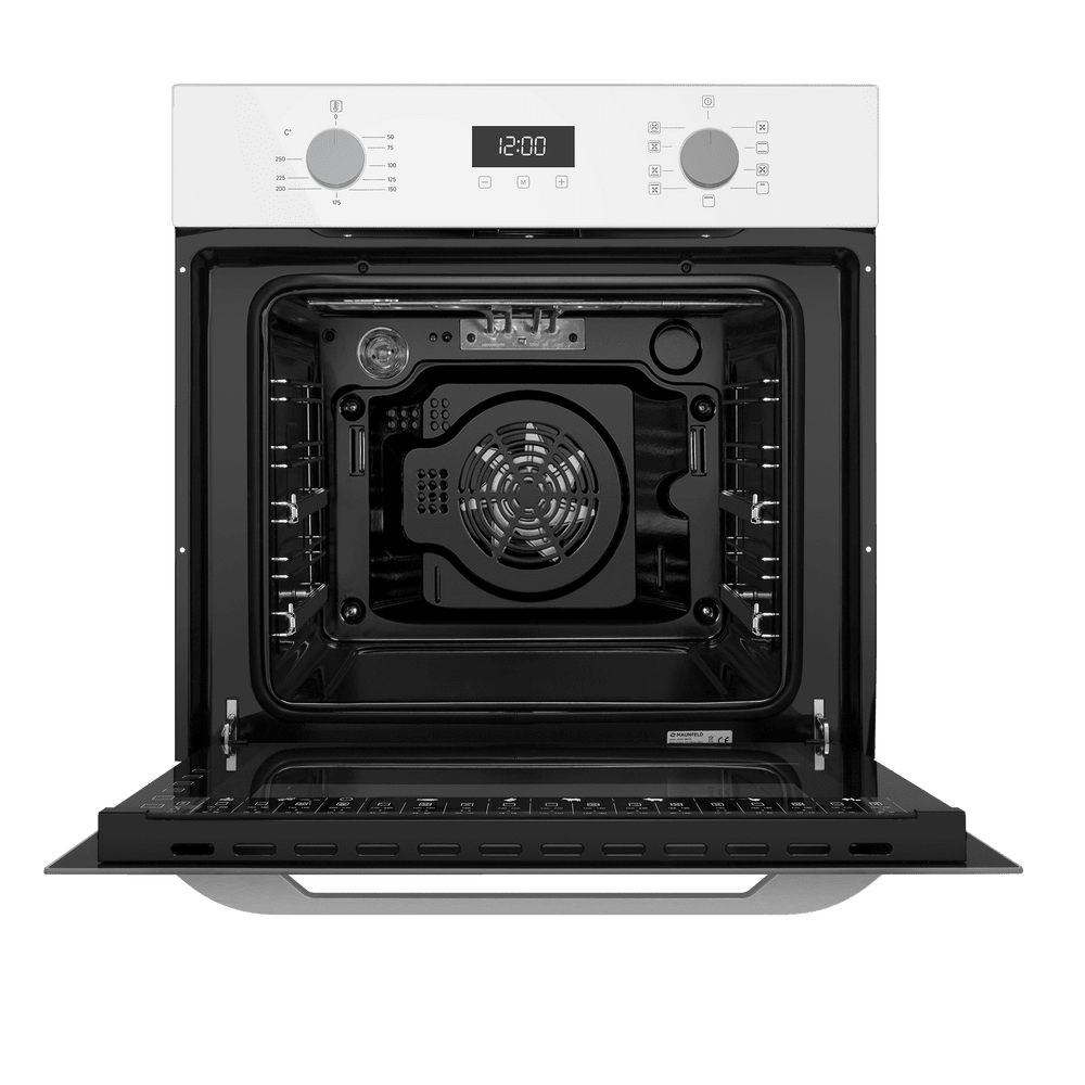 Безопасность на кухне поддерживает тангенциальное охлаждение, снижающее нагрев мебели вокруг, и «холодный фронт» с 3 стеклами двери, благодаря которому внешнее стекло практически не греется — удобно и спокойно, даже когда рядом дети. Черное жаропрочное стекло фронтальной панели окрашено по всему объему, подчеркивая премиальный характер модели и делая MAUNFELD EOEM7610W достойным центром современной кухни.