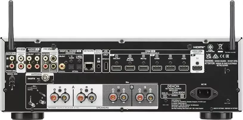 Denon DRA-900H — это 2-канальный сетевой усилитель, который идеально интегрируется с домашним аудио. Вы можете подключить проигрыватели винила, компакт-дисков и Blue-ray, наслаждаться аудиофайлами высокого разрешения через сеть или USB и слушать радио. Усилитель поддерживает изображение с разрешением до 8K, а разъем HDMI с поддержкой ARC/eARC позволяет легко подключиться к телевизору одним кабелем. Для геймеров секция HDMI поддерживает переменную частоту обновления (VRR), высокоскоростную передачу кадров (QFT) и автоматический режим с малой задержкой (ALLM) для плавного игрового процесса без задержек, когда усилитель подключен к совместимым игровым устройствам и отображать. Встроенная система HEOS позволяет вам транслировать музыку по сети с помощью таких сервисов, как Spotify, Tidal и Deezer, а также делиться звуком с другими динамиками и устройствами с поддержкой HEOS по всему дому. С помощью Apple AirPlay 2 вы можете воспроизводить контент через Apple Music, группировать другие колонки с поддержкой AirPlay 2 и использовать Siri для голосового управления. Кроме того, двусторонняя связь Bluetooth позволяет отправлять музыку на усилитель со смарт-устройства или подключать к усилителю наушники Bluetooth. Таким образом, вы можете спокойно слушать устройства, подключенные к усилителю, например, поздно ночью, не мешая окружающим. Функция также отлично подходит, если у члена семьи проблемы со слухом, поскольку звук можно воспроизводить как через динамики, так и через наушники одновременно.