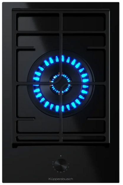 Газовая варочная панель Kuppersbusch VKGW 3551.0 SR E5 — это компактное и мощное решение для тех, кто ценит точность и стиль в ограниченном пространстве. Модель представляет собой независимую газовую панель с одной двухконтурной WOK-горелкой мощностью 8 кВт, обеспечивающей быстрый нагрев и идеальные условия для приготовления блюд азиатской кухни. Выполнена в классическом черном цвете с прямым краем, что придает ей строгий и современный вид. Неглубокий профиль высотой 5 см и габариты 33.8×51.8 см позволяют аккуратно вписать прибор в узкие ниши и столешницы. Двухконтурная система горения позволяет плавно регулировать пламя: внутреннее кольцо включает экономичный режим для тушения, внешнее — для интенсивного обжаривания и быстрого кипячения. Механическое управление с фронтальным расположением поворотных переключателей, автоматический электроподжиг и система безопасности газ-контроль обеспечивают максимальный комфорт и безопасность. Чугунная решетка устойчива к высоким температурам и механическим нагрузкам, надежно фиксирует посуду.