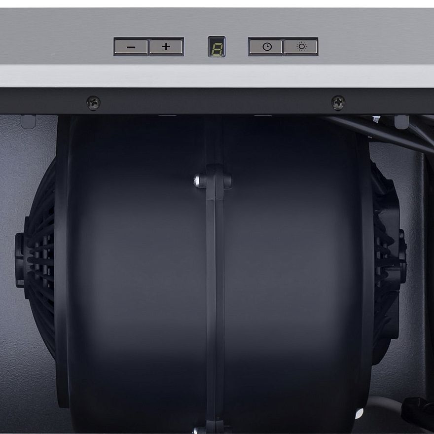Управление вытяжкой осуществляется с помощью сенсорных переключателей, что делает её использование удобным и простым. Также есть возможность дистанционного управления с помощью пульта ДУ. Встроенный таймер позволяет установить время работы вытяжки, что особенно удобно при приготовлении сложных блюд.